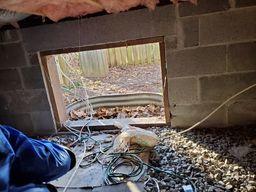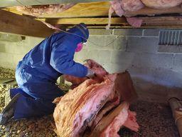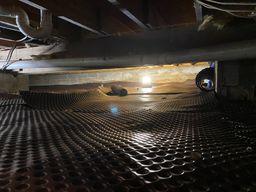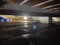 Drainage matting laid down. Notice our guy crawling to get around in the upper left corner!