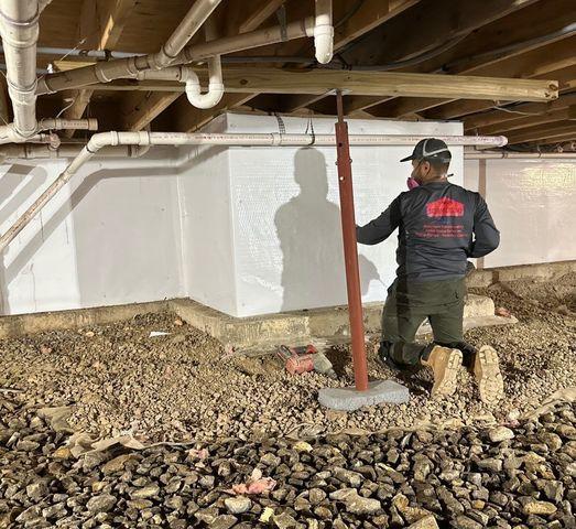 Installing Clean Space to the walls helps create a moisture barrier and a nice bright clean look for the crawl space.