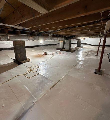 Clean space covering the floors and foundation supports will help keep moisture contained below.