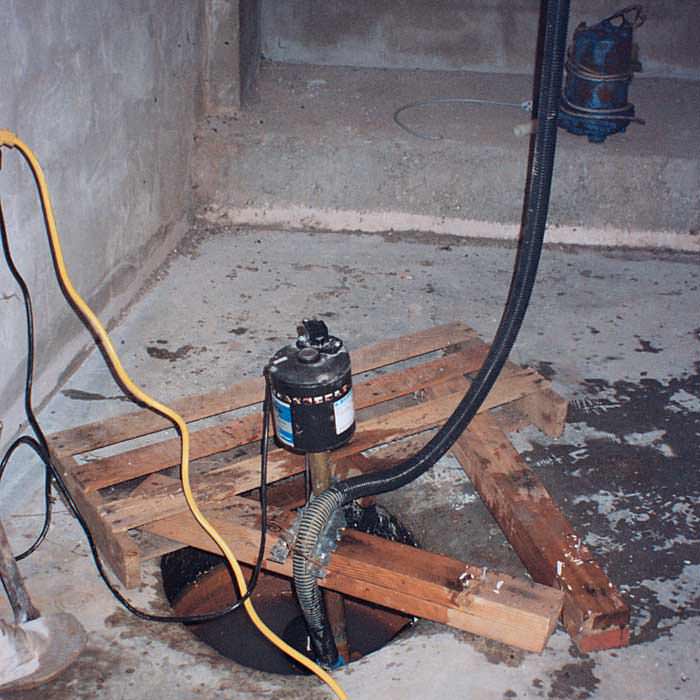 "Floor Sucker" sump pumps will only switch on after the basement has already flooded. They're often used by contractors and many homeowners as an emergency pump to suck the water off of the floor before installing a better waterproofing system.